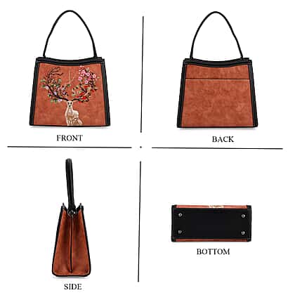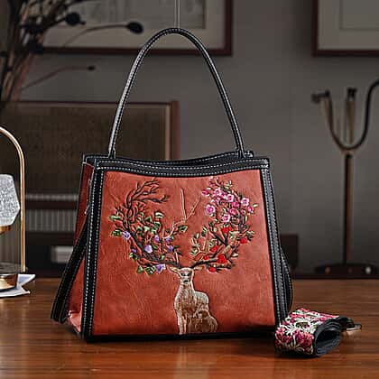 Floral Deer Embroidered Sling Handbag - Terracotta