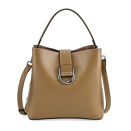 This designer inspired genuine leather bucket bag combines structured design with practical everyday functionality. Crafted from genuine leather, the bag features a rich brown finish that creates a refined and versatile appearance. The bucket style silhouette provides a spacious interior designed to carry daily essentials such as a wallet, phone, cosmetics, and small personal items. A sturdy top handle allows comfortable hand carrying, while the detachable strap offers the option for shoulder or crossbody wear. The secure closure helps keep belongings organised and protected. Combining practical storage with a timeless design, this leather bucket bag offers a stylish accessory for everyday use.