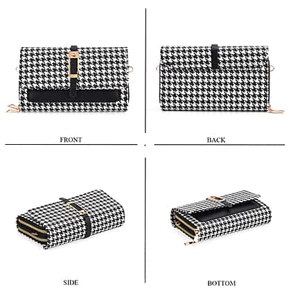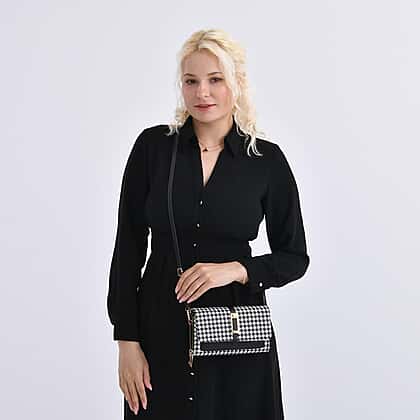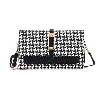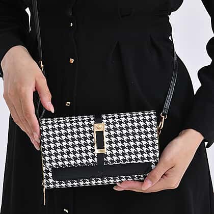 Designer Inspired - Houndstooth Pattern Crossbody Bag - Black - White