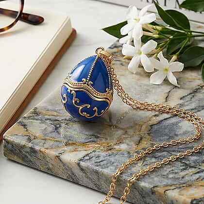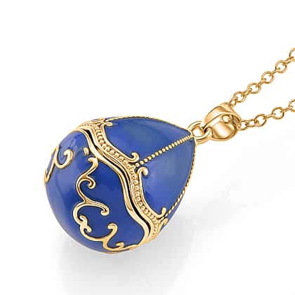 Blue Enameled Egg Pendant with Chain (Size 24-2 Ext) in Yellow Gold Tone