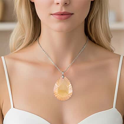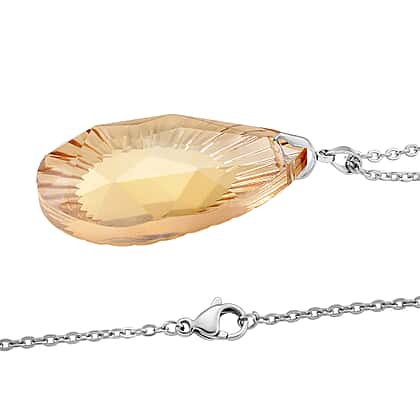 A soft glow of refined colour defines this pendant, where a champagne-toned crystal radiates warmth through its beautifully faceted surface. The classic pear shape is enhanced with precision cuts that fan outward, creating a sunburst effect that captures and reflects light with subtle brilliance. This delicate play of light gives the piece a luminous, almost glowing appearance, while the warm neutral hue adds a touch of understated sophistication. The smooth silver-tone setting provides a clean, modern contrast, allowing the gentle champagne tones to remain the focal point. Balanced and visually graceful, the design offers a polished look with a soft, radiant finish. Perfect for adding a subtle shimmer to both everyday looks and special occasions.