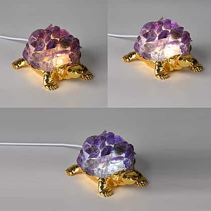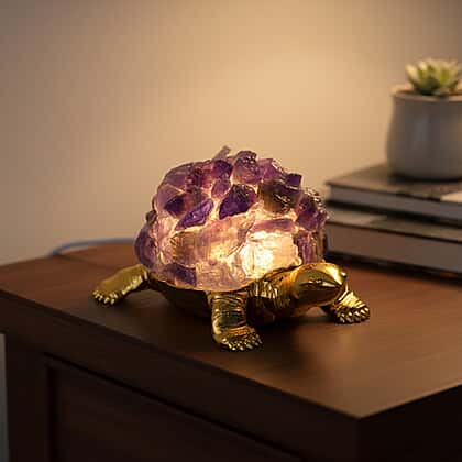 Make a striking decorative statement with this Decorative Crystal in purple, designed to combine textured detail with soft internal lighting. The crystal-style formation features rich purple tones and sits on a detailed gold-tone turtle base, creating a distinctive accent for bedside tables, consoles or shelves. When switched on, the built-in LED light gently shines through the crystal effect, producing a warm glow that enhances its colour and depth. Compact yet eye-catching, it suits bedrooms, living rooms or office spaces. Ideal for everyday display or gifting, this piece adds colour, light and character to any interior setting.