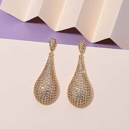 Yellow Cubic Zirconia Teardrop Earring with Push Back