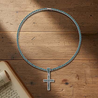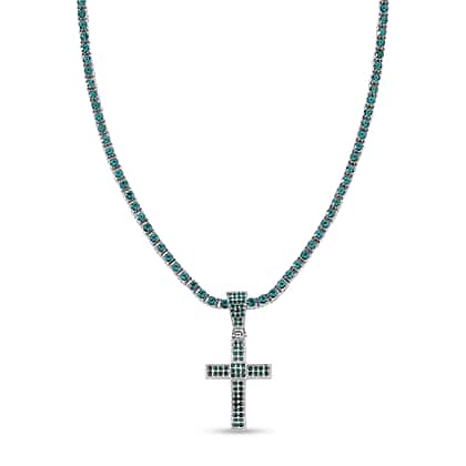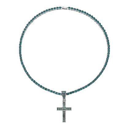 Austrian Green Crystal Cross Pendant with Chain (Size - 20)