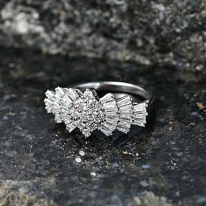 Designer Inspired Moissanite Ballerina Ring in Sterling Silver 1.07 Ct.