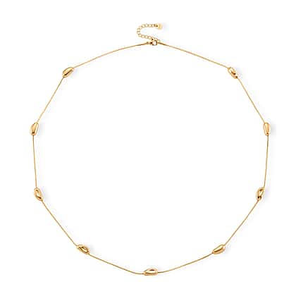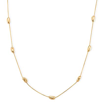 A perfect fusion of simplicity and refined detailing, this yellow gold tone necklace is designed to offer a graceful presence with a polished and contemporary finish. The fine, delicate chain is thoughtfully accented with evenly spaced bead-like elements, creating a sense of rhythm and gentle movement that catches the light with a soft, subtle shimmer. Its clean and minimal design allows it to rest neatly along the neckline, enhancing natural styling. Ideal for layering with other pieces or wearing alone for a more understated statement, it adapts effortlessly to different occasions. Finished with an adjustable fastening for ease, comfort and a personalised fit, this necklace blends modern styling with everyday versatility.