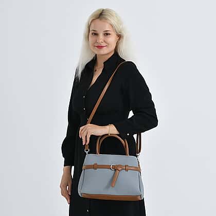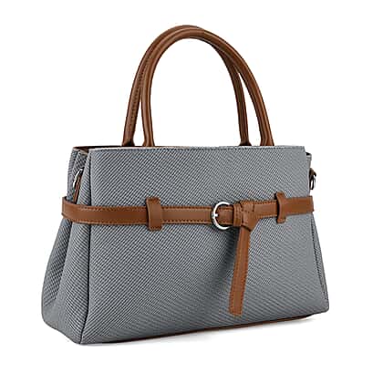 This satchel-style handbag is designed with a structured design that maintains its shape while offering a clean and balanced appearance. The exterior features a textured finish that enhances durability while adding subtle visual depth. A distinctive belt detail across the front provides a refined design element, giving the bag a modern yet classic look. It is equipped with sturdy top handles for a secure grip, along with a detachable strap that allows for alternative carrying options. The interior is spacious and organised, making it suitable for storing daily essentials such as a wallet, phone, and small accessories. Designed for practicality and style, it works well for both everyday use and more coordinated outfits.