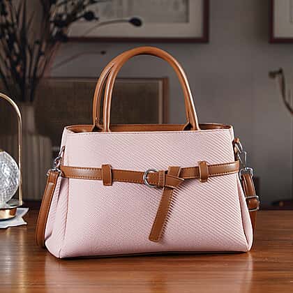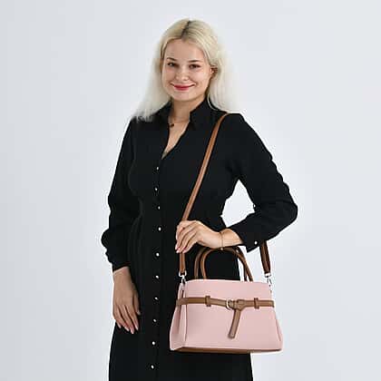 Designer Inspired Satchel-Style Handbag with Belt Detail - Pink