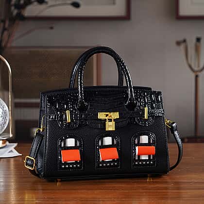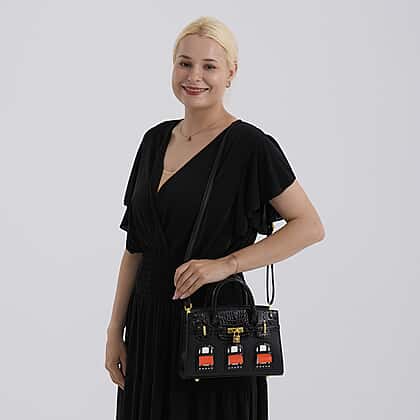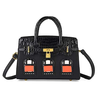 Designer-Inspired Structured Handbag with Crossbody Strap - Black