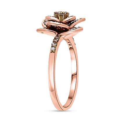 Champagne Diamond Floral Ring in Vermeil Rose Gold Plated Sterling Silver