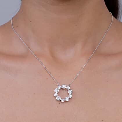 D'Joy - Moissanite Necklace (Size - 20) with Lobster Clasp in Platinum Overlay Sterling Silver 1.70 Ct.