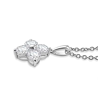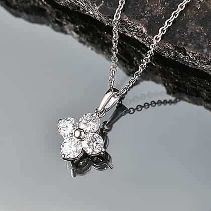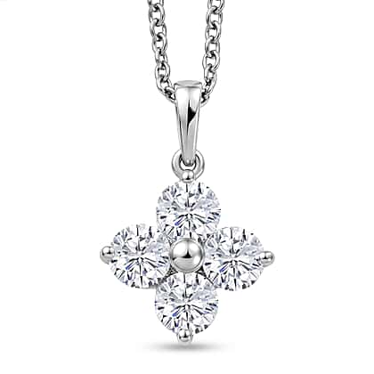 D'Joy - Moissanite Floral Pendant in Platinum Overlay Sterling Silver with Chain (Size 20) 1.77 Ct.