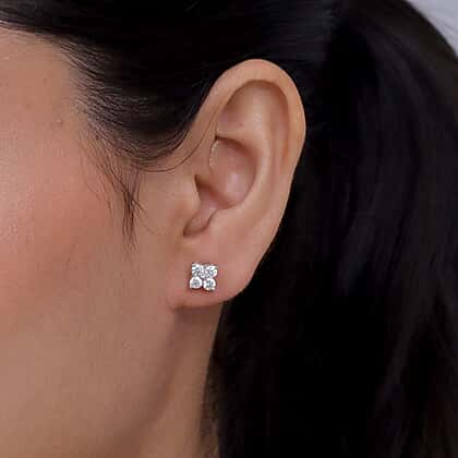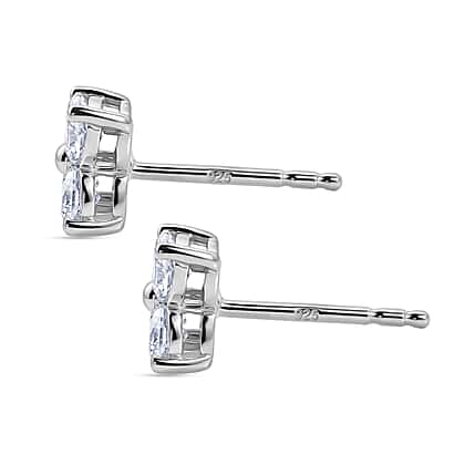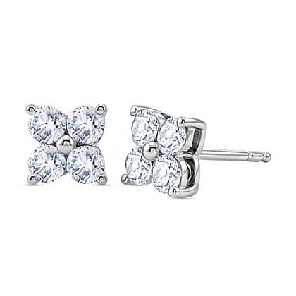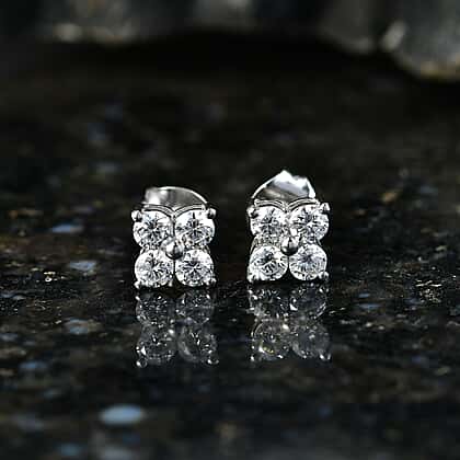 Introducing a refined addition to your everyday style, these moissanite floral stud earrings are designed in a compact cluster that reflects light from every angle. The four-stone arrangement forms a subtle flower shape, creating a balanced and polished look that feels both fresh and timeless. Each moissanite is precisely set to enhance clarity and brilliance, resulting in a clean and structured finish. The simple design keeps the focus on the stones, making them easy to pair with any outfit. Finished in platinum overlay on 925 sterling silver, they offer a bright, lustrous shine that complements their detailed form. Secured with a push-back fastening, they provide comfort and ease for all-day wear. They are a reflection of simplicity, detail, and effortless style.