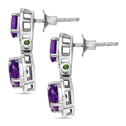 D'Joy AAA African Amethyst & Natural Chrome Diopside Dangling Push Post Earring in Platinum Overlay Sterling Silver 3.31 Ct.