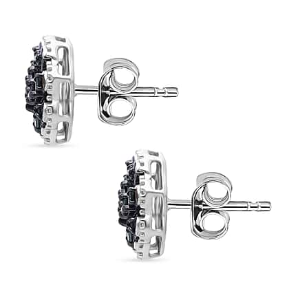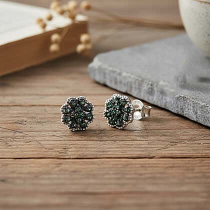 D'Joy Green Diamond Cluster Push Post Earring in Rhodium Overlay Sterling Silver