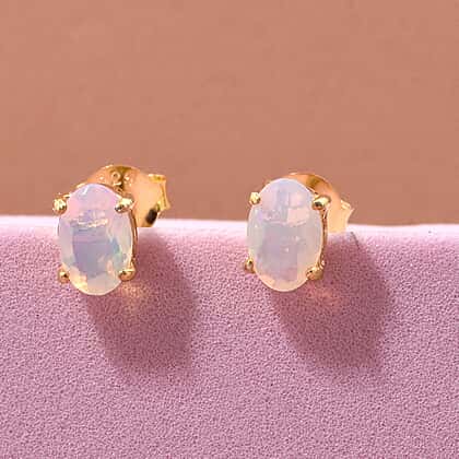 D'Joy Ethiopian Opal Earring with Push Back in Yellow Gold Plated Sterling Silver