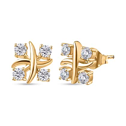 D'Joy Moissanite Cluster Earring with Push Back in Yellow Gold Plated Sterling Silver