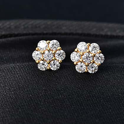 D'Joy Moissanite Cluster Earring with Push Back in Yellow Gold Plated Sterling Silver 1.58 Ct.