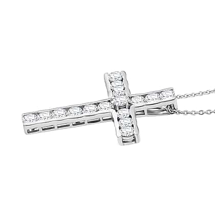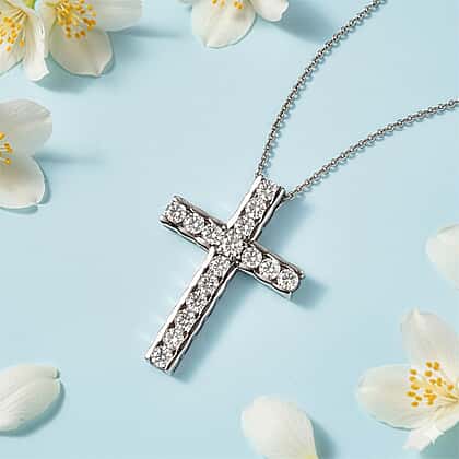 D'Joy Moissanite Cross Pendant with Chain (Size 20) in Platinum Overlay Sterling Silver 1.66 Ct.