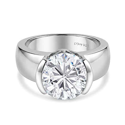 D'Joy Moissanite Solitaire Ring in Rhodium Overlay Sterling Silver 4.16 Ct.