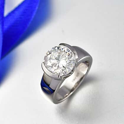 D'Joy Moissanite Solitaire Ring in Sterling Silver 4.00 Ct.