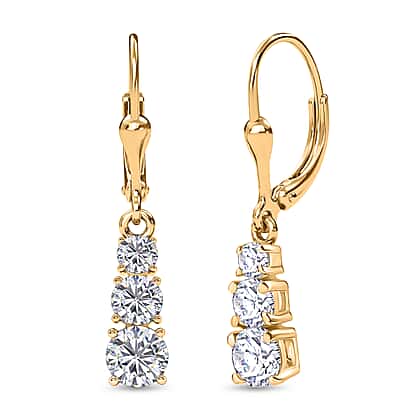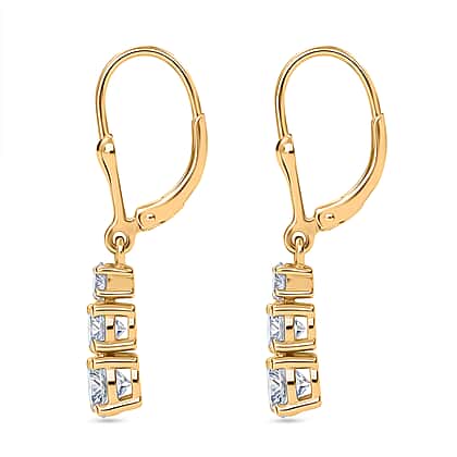 D'Joy Moissanite Trilogy Earrings with Lever Backs in Gold Overlay Sterling Silver 1.64 Ct.