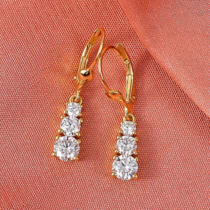 D'Joy Moissanite Graduated Drop Earring with Lever Back in Yellow Gold Plated Sterling Silver 1.64 Ct.