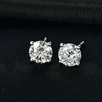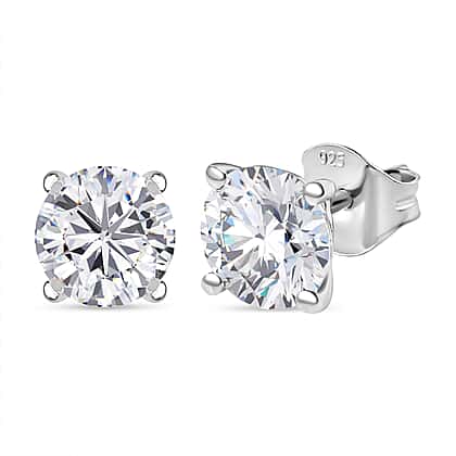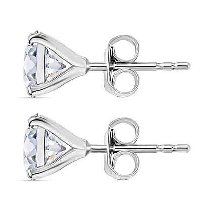 D'Joy Moissanite Solitaire Stud Push Post Earring in Rhodium OverlaySterling Silver 2.424 Ct.