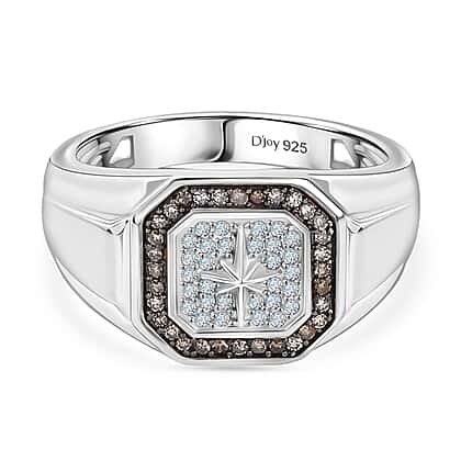D'Joy White Diamond Men's Sunburst Ring in Sterling Silver