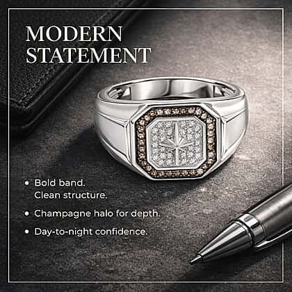Confidence meets character in this natural white diamond men's starburst ring, as it displays bold lines and striking sparkle in a clean, structured design. Laced with a halo of rare champagne diamonds, the starburst centre adds a sense of direction and purpose, framed by naturally robust white diamonds. The hypoallergenic, tarnish-resistant sterling silver offers comfort for sensitive skin, while the wide band gives the piece real presence. This ring feels considered and meaningful, making it a strong choice for women looking for a standout gift with depth and intention.