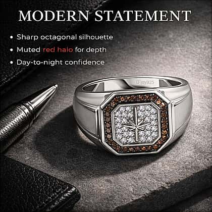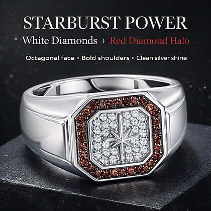 Bring a bold edge to everyday style with this natural white diamond men's starburst ring as it blends strength, detail and meaning in one confident piece. The starburst centre adds a touch of symbolism, hinting at direction and purpose, while the robust white and red diamonds offer lasting sparkle and rich colour. Each stone is naturally durable, making the ring ideal for daily wear. The polished rhodium-plated sterling silver feels smooth on the skin, sits comfortably, and stays tarnish-resistant. Designed for those who appreciate standout craftsmanship, it’s a striking piece that feels both modern and meaningful.