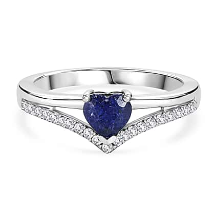 A refined interplay of romance and precision defines this design, where a heart-shaped blue sapphire introduces depth, softness, and quiet allure. The gemstone is seamlessly integrated into a sculpted setting, its design echoed by the gentle V-shaped band to create a natural sense of flow. This wishbone-inspired form draws the eye inward, allowing the heart motif to feel both intentional and fluid within the overall composition. Fine white zircon accents trace the band, adding a subtle shimmer that enhances the design without overwhelming its character. Finished in rhodium overlay on 925 sterling silver, the cool, polished surface sharpens every detail, resulting in a piece that feels balanced, expressive, and distinctly refined. Perfect for romantic occasions or meaningful gifting, this piece adds a refined touch to both everyday styling and special moments.