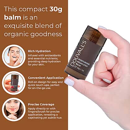 Discover the unparalleled hydration and versatility of Douvall's Argan Roll On Multi Balm. This compact 30g balm is an exquisite blend of organic, first cold pressed 100% argan oil, brimming with nourishing antioxidants, vitamins, and essential fatty acids. Specially formulated to deliver intense hydration, it combats dry skin effortlessly. Its convenient roll-on application makes it perfect for on-the-go touch-ups. Apply it directly to lips, cheeks, and eyes, or use fingers or a brush for a more precise application and revel in its subtle yet captivating hue.