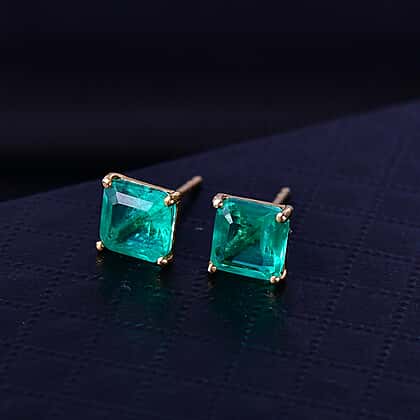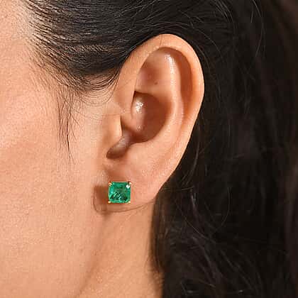 Emeraldine Triplet Quartz Solitaire Stud Push Post Earring in Yellow Gold Plated Sterling Silver 3.35 Ct.