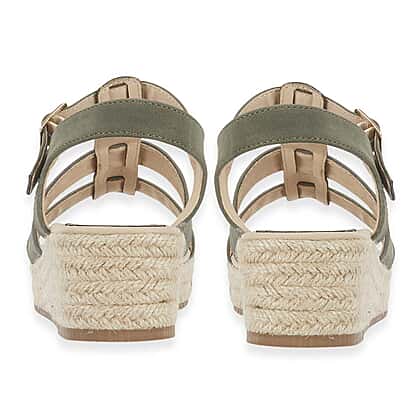 Emma Bonnie Espadrille Strappy T-Bar Wedge Heel Sandals With Adjustable Ankle Strap