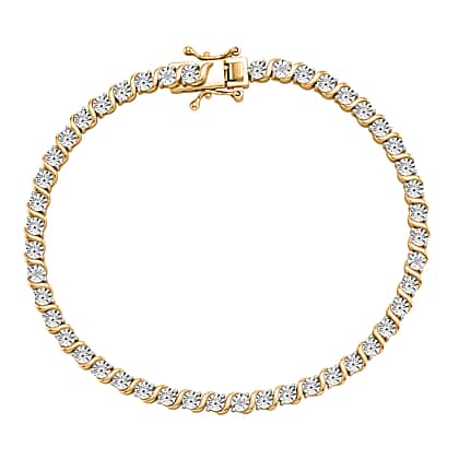 EverTrue - White Diamond Tennis Bracelet (Size - 7.5) with GB Lock Box in Yellow Gold Tone