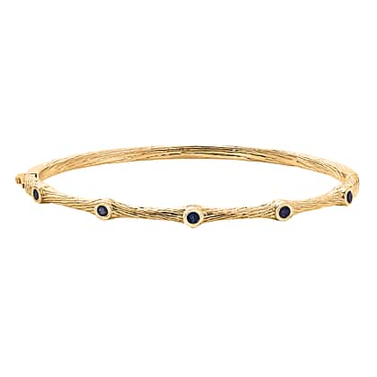 EverTrue Blue Sapphire Bamboo Bangle in Yellow Gold Plated