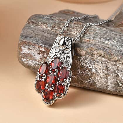 Capture attention with this cluster pendant, adorned with red garnet in floral inspired design. Red garnet is revered for its intense red colour, high transparency and often known as january birthstone. Meticulously crafted in pure stainless steel, this piece ensures lasting shine and durability. Paired with a secure sleek matching chain, offering versatile wear options. The intricate detailing on the bail enhances the beauty of red garnet, adding exceptional craftsmanship and artistry. A perfect piece for styling on special occasions and giving someone a lasting impression. Red garnet is the primary january birthstone that is believed to have a symbolic association with trust, commitment and friendship, making it suitable for gifting on birthdays.