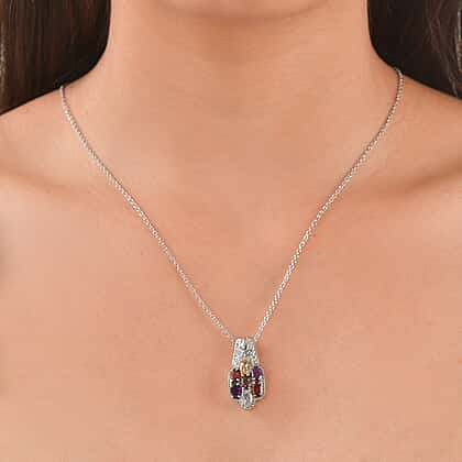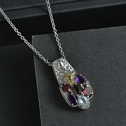 - The pendant features a stunning cluster design with multiple genuine gemstones.