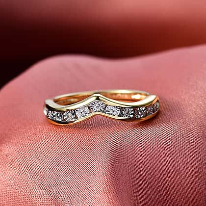 Striking yet effortlessly wearable, add instant sparkle and shape to your ring stack with this EverTrue wishbone band. The V-shaped curve is designed to nest neatly against solitaires and halo settings, creating a shaped, layered look without adding bulk. A line of white diamonds across the front delivers crisp sparkle, while the smooth, low-profile finish keeps it comfortable for day-to-day wear. Finished in yellow gold tone for a bright, warm tone shine, it blends easily with other silver-tone pieces and pairs beautifully with warm metal stacks too, perfect as a finishing band, a gift, or a bridal-style companion.