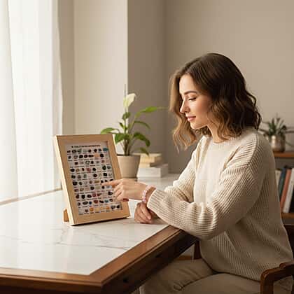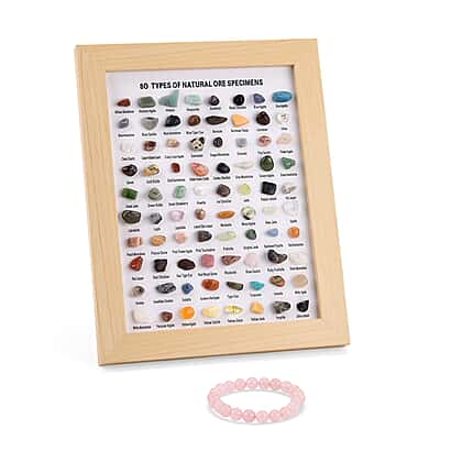 80 Genuine Gemstone Frame Collection with Bracelet (Size 7 Strachable) - Rose Quartz