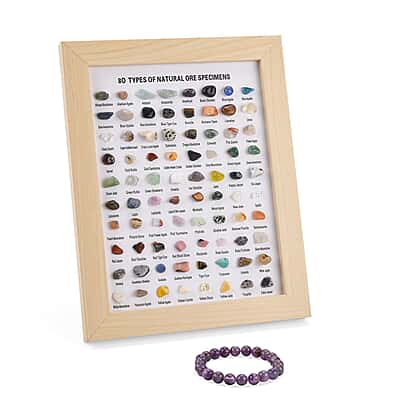 80 Genuine Gemstone Frame Collection with Bracelet (Size 7 Stretchable) - Amethyst