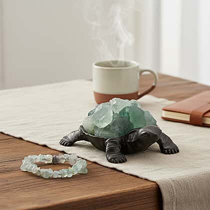 2-Piece Fluorite Crystal Turtle with Matching Bracelet - Green