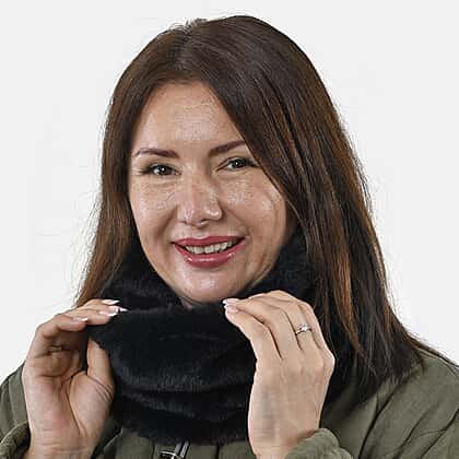 Faux Fur Snood with Drawstring (Size 35x28 Cm) - Black