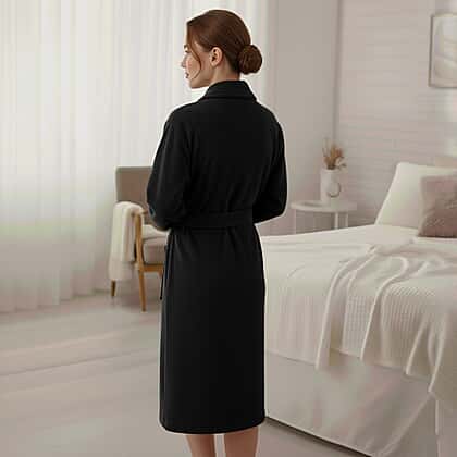 Styled By Supersoft Fleece Dressing Gown with Pockets (Size L-XL) - Black
