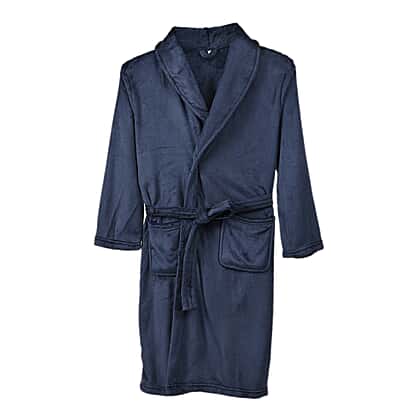 Styled By Supersoft Fleece Dressing Gown with Pockets (Size L-XL) - Navy