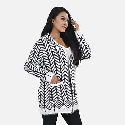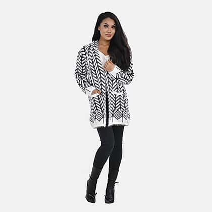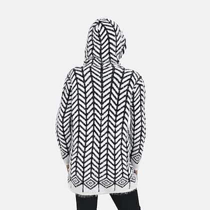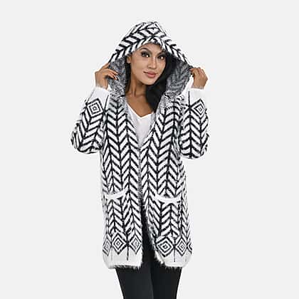 Abstract Pattern Coatigan with Hoodie (Size 8 - 18) - Black - White