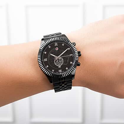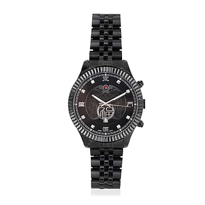 GENOA TIME V2 Miyota 2115 Quartz 3ATM WR Dragon Pattern & Crystal Dial & Black Case Mens Watch with Black Stainless Steel Strap