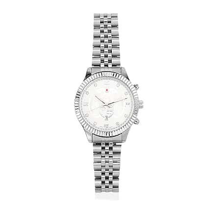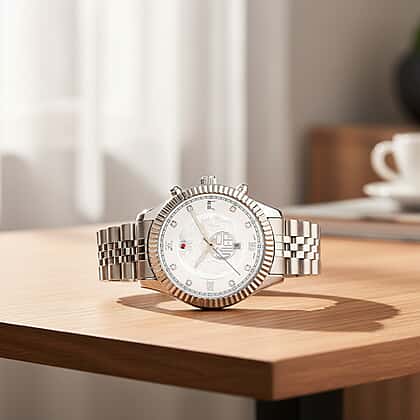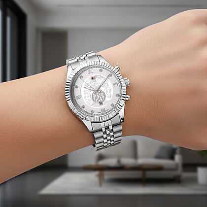 GENOA TIME V2 Miyota 2115 Quartz 3ATM WR Dragon Pattern & Crystal Dial & Silver Case Mens Watch with Silver Stainless Steel Strap
