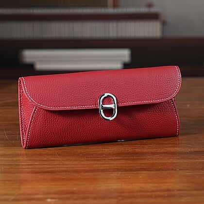 Genuine Leather RFID Protected Slimline Clutch - Burgundy